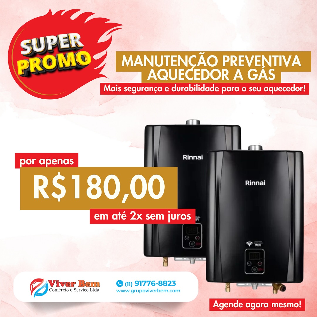 Manutenção de Aquecedores a Gás, Instalação e Conserto | Grupo Viver Bem 72 avaliações no GooglePublicado em fernanda martinsTrustindex verifica se a fonte original da avaliação é Google. Serviço de qualidade!! RecomendoPublicado em Maria Rita Santos CardosoTrustindex verifica se a fonte original da avaliação é Google. Ótima qualidade!Publicado em Suzy SousaTrustindex verifica se a fonte original da avaliação é Google. Um ótimo atendimento! Super recomendo!Publicado em Anderson SantosTrustindex verifica se a fonte original da avaliação é Google. Empresa ótima com profissionais bem educados e capacitados!Publicado em Geovanna FurlanTrustindex verifica se a fonte original da avaliação é Google. Funcionários muito organizados e educados, serviço feito certinhoPublicado em Everaldo SantosTrustindex verifica se a fonte original da avaliação é Google. Muito bom profissional.Publicado em Kallel DenerTrustindex verifica se a fonte original da avaliação é Google. Atendimento ótimo, loja bem completa e organizadaPublicado em Pedro Lima DaineziTrustindex verifica se a fonte original da avaliação é Google. Super recomendo, manutenção, troca de todas as mangueiras e duto. Profissionais qualificados e muito atenciosos.Publicado em Bruna NevesTrustindex verifica se a fonte original da avaliação é Google. Atendimento 100% humanizado, realizou a manutenção no meu aquecedor e o reparo que era necessário. Podem confiar. Obrigada a equipe.Publicado em Letícia SilvaTrustindex verifica se a fonte original da avaliação é Google. Ótimo serviço de instalação de aquecedor a gás na minha residência , recomendo! Foi rápido e preço justo